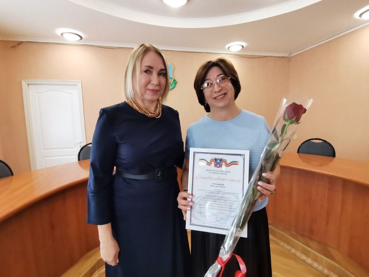 В администрации Первомайского района состоялось чествование педагогов. Заместитель главы , Соколова Светлана Владимировна , за большой вклад в развитие системы образования Ростовской области и плодотворный труд по обучению и воспитанию молодежи вручила благодарственное письмо Министерства образования Ростовской области и благодарственные письма главы администрации Первомайского района педагогам нашей школы — Инне Анатольевне Ворониной, Татьяне Михайловне Богдановой, Ольге Владимировне Степановой. Спасибо вам за то, что вы есть!
