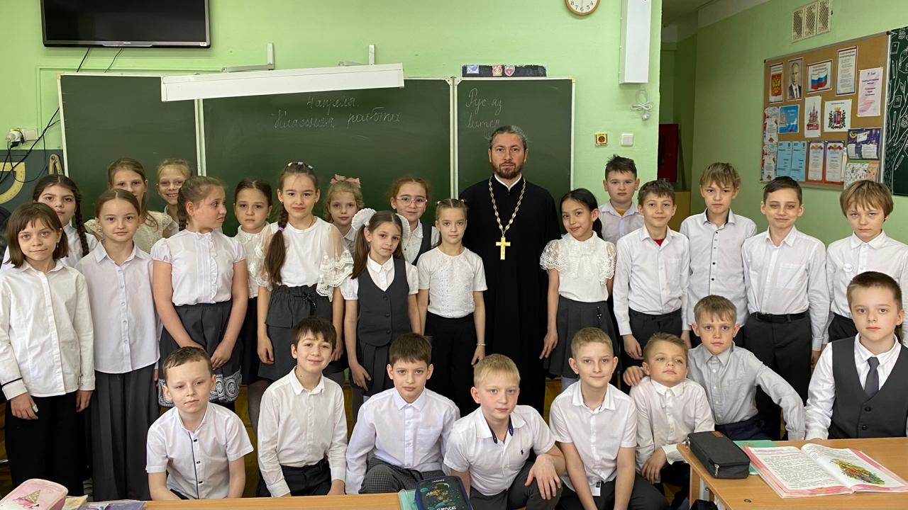 4 апреля 2024 года состоялась беседа на тему «Через книгу к познанию» для учащихся в 3 «Б» класса. Настоятель Софийского храма города Ростова-на-Дону протоиерей Анатолий Гомоюнов рассказал ребятам о жизни новомучеников и исповедников Церкви Русской, познакомил с современными и старинными изданиями. Беседа завершилась рассказом о житии священномученика Константина Ростовского (Верецкого).Затем протоиерей Анатолий Гомоюнов ответил на вопросы детей.