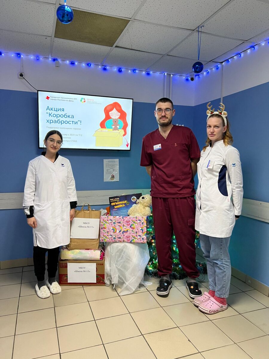 Эта акция приурочена к «Всемирному дню борьбы со СПИДом и стартовала в поликлинике «1 . На фото Джафарова Гюнель ,выпускница 2022 года, а сейчас студентка РостГМУ