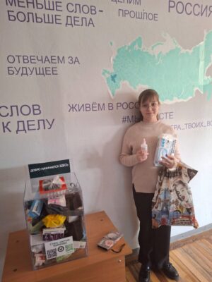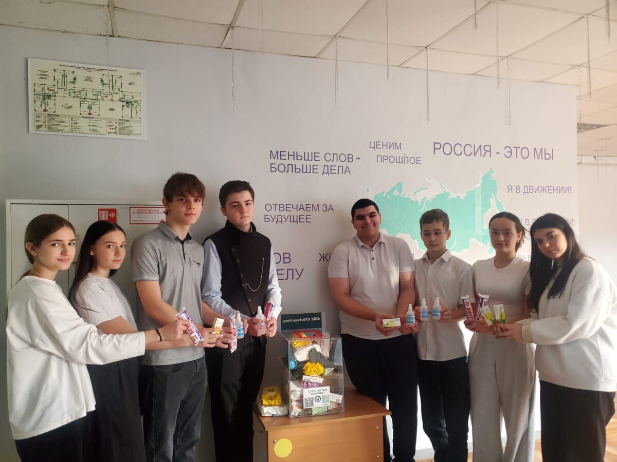Учениками нашей школы были собраны средства личной гигиены, медикаменты, теплые вещи. Собранные посылки были переданы Фальчик Елене, волонтеру группы поддержки бойцов спецоперации «ХоZяюшки Дона.