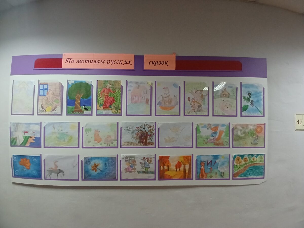 А перемещаясь по фойе, школьники погрузятся в мир русских сказок. Стенд, оживший прямо со страниц любимых русских сказок, предстал перед ними во всех ярких красках.